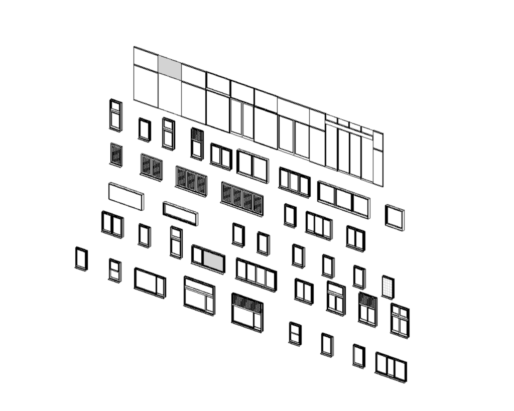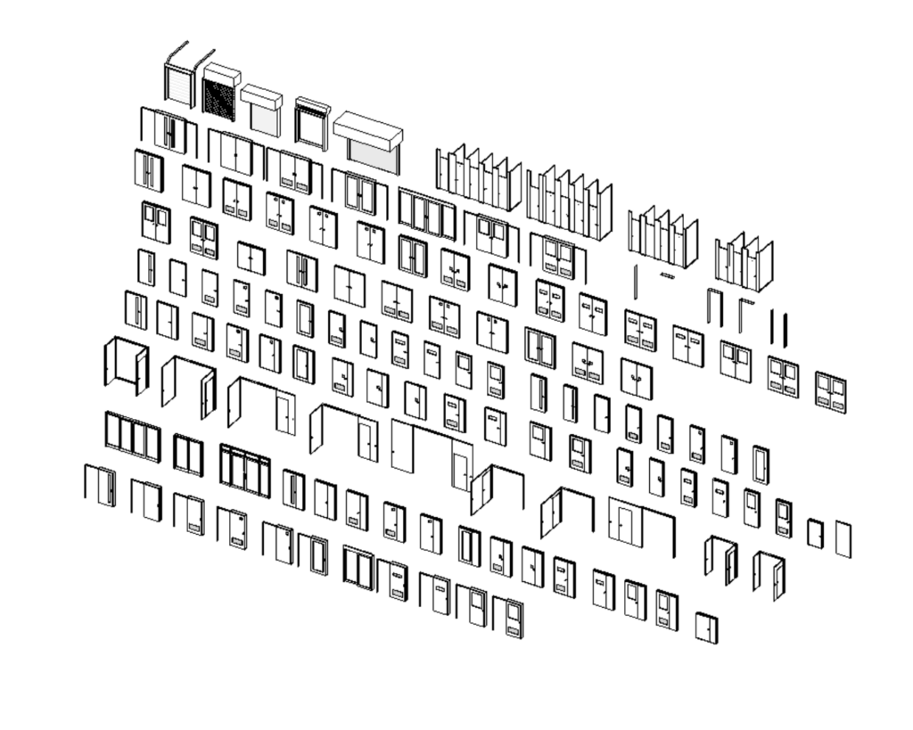 ドア・窓のファミリを枠やパネル、ハンドルなどのパーツを選択してファミリを作成できます。