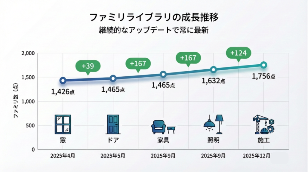 オリジナルファミリやFamilyCreateは随時更新しており、今後もお客様のニーズに合わせて追加していきます。