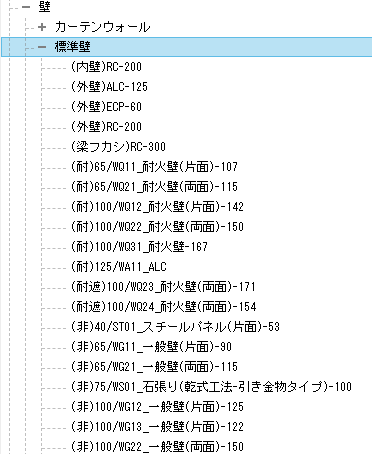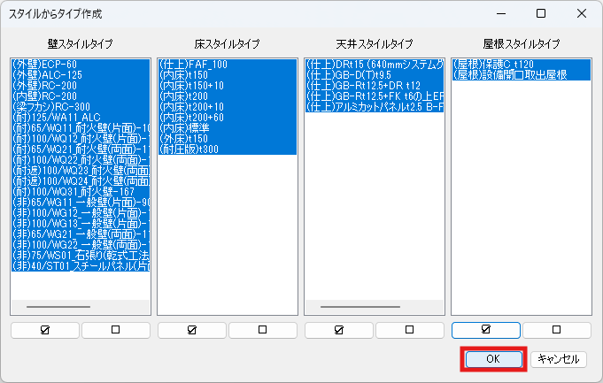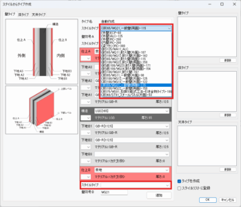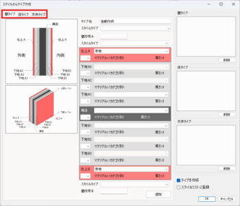 スタイルリストの情報から壁・床・天井・屋根のタイプを作成します。