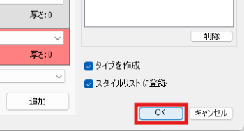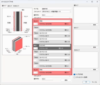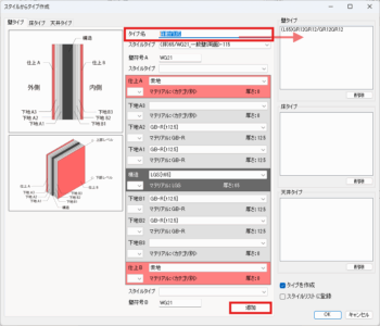 ※既定値「自動作成」の状態で[追加]ボタンをクリックするとスタイル記号の組み合わせでタイプ名が自動的に名前付けされます。