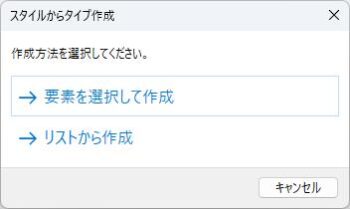 ダイアログで要素を選択して作成する場合は[要素を選択して作成]を、スタイルリストに登録済みのタイプから作成する場合は[リストから作成]を選択します。
