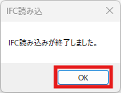 読み込みが完了するとメッセージが表示されるので[OK]ボタンをクリックします。