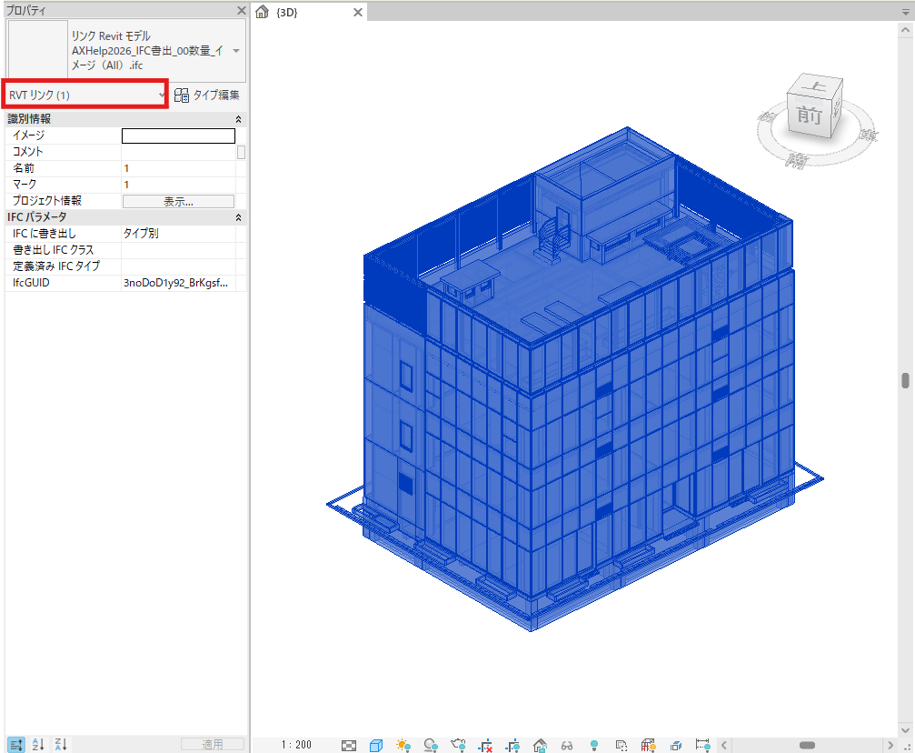 [IFCファイル]項目で、Revitに読み込むIFCファイルを選択します。