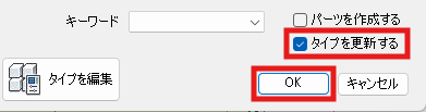 パーツを作成する場合は[パーツを作成する]にチェックを入れます。